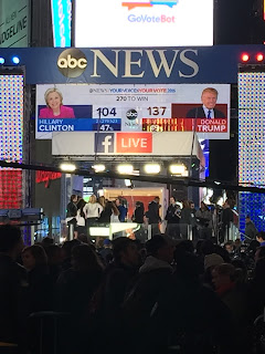 After getting our pictures we went back to our hotel. We turned on the news and watched the Election Coverage until the results started coming in. We then went to get a bite to eat before heading to Times Square to see what ABC was doing to cover the election.