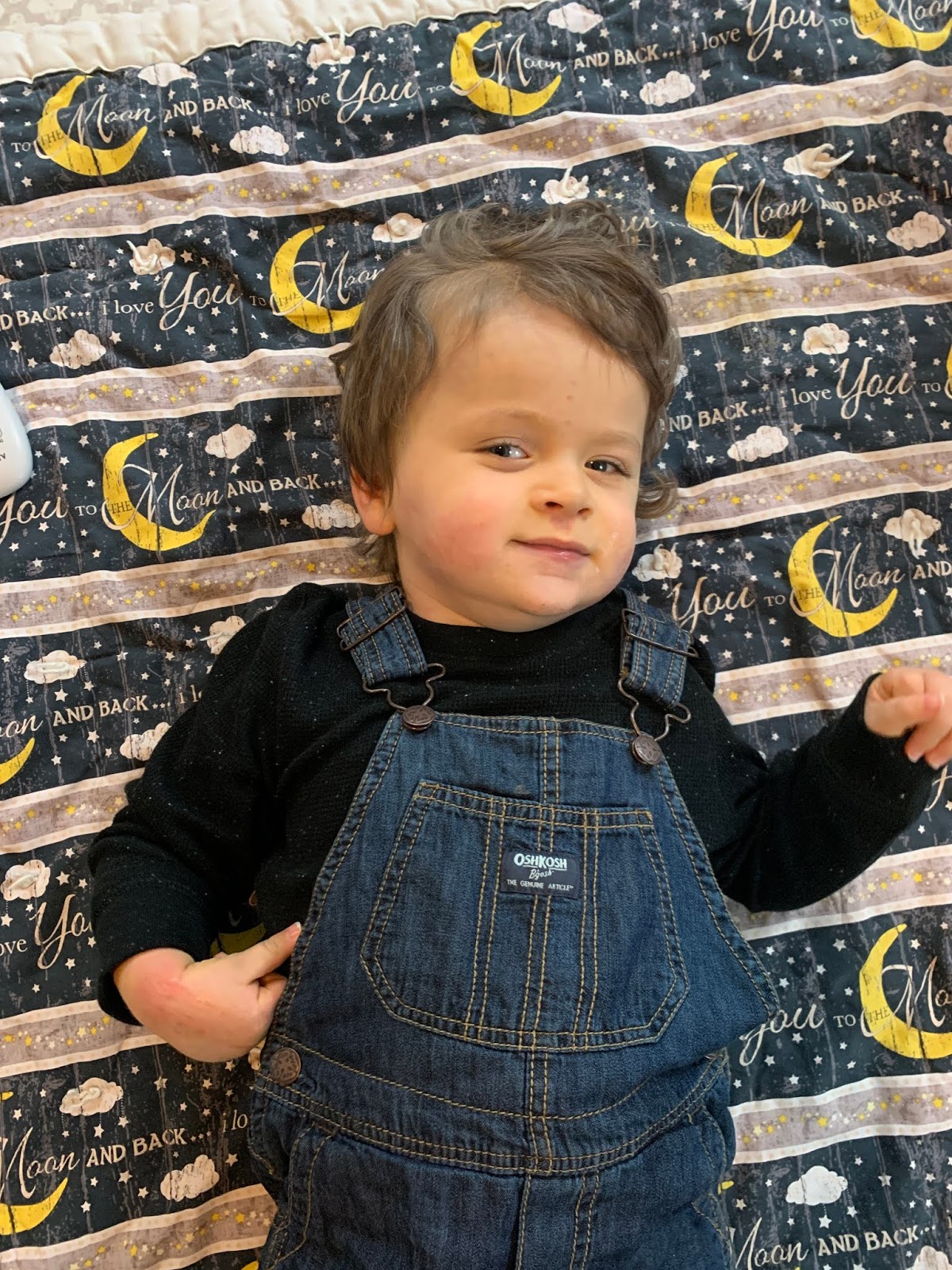 Did you know that most places stop making onesies at 24 months? I've been able to get a few in larger sizes but they are usually very expensive. Theo needs to be in onesies because he is still on the ground so much and if he is in just a shirt and pants then his pants fall down and his shirt rides up. Solution?! Overalls! Doesn't he look so handsome?!